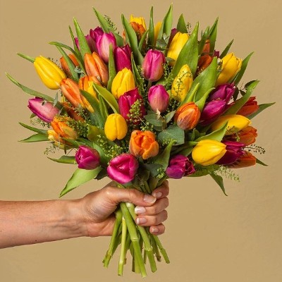 Très beau bouquet de tulipes classique et coloré, conçu pour ramener de bons souvenirs de printemps. Parfait pour toute occasion. La beauté de ce bouquet défie son prix économique, pour le plaisir de tous.